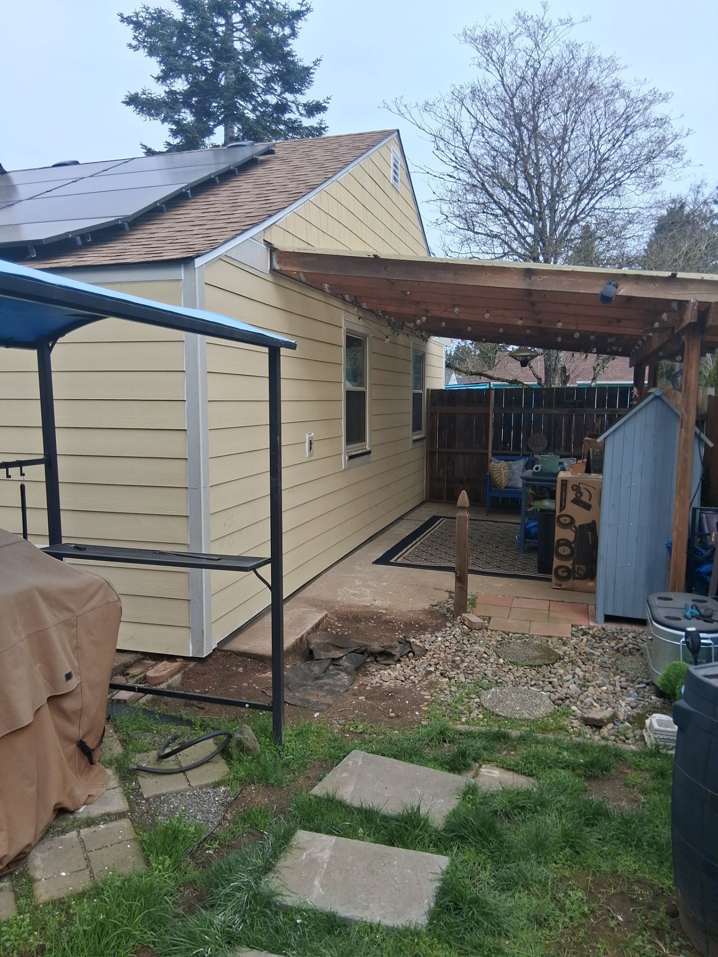 The project begins with a site review to determine the best location, orientation, and attachment method for the structure. Patio covers are typically attached to the house with a ledger board bolted into the rim joist or wall framing, then supported on the opposite end by posts set in concrete footings below the frost line. Beams span between the ledger and the posts, and either solid roofing panels or slatted rafters are installed depending on whether you want full rain protection or filtered sunlight. Pergolas use open rafter spacing to create partial shade and allow climbing plants to grow over time, while solid covers use corrugated metal, polycarbonate panels, or shingles to match the main roof. Flashing is installed where the ledger meets the house to prevent water from entering the wall, a detail that becomes critical during Molalla's wet season when wind-driven rain can push moisture into unsealed joints.